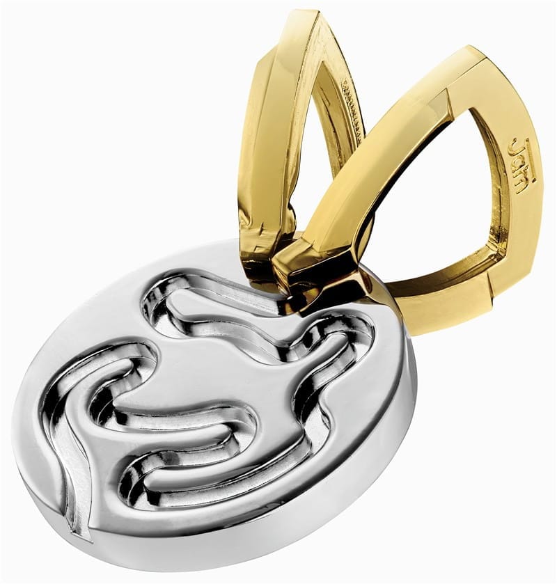 El Huzzle Cast Jam es un ingenioso rompecabezas metálico diseñado por Yuu Asaka que destaca por su original mecánica basada en rutas entrelazadas. Su estructura combina un disco central con dos anillos dorados que se desplazan por caminos intrincados, creando un desafío dinámico y muy entretenido.