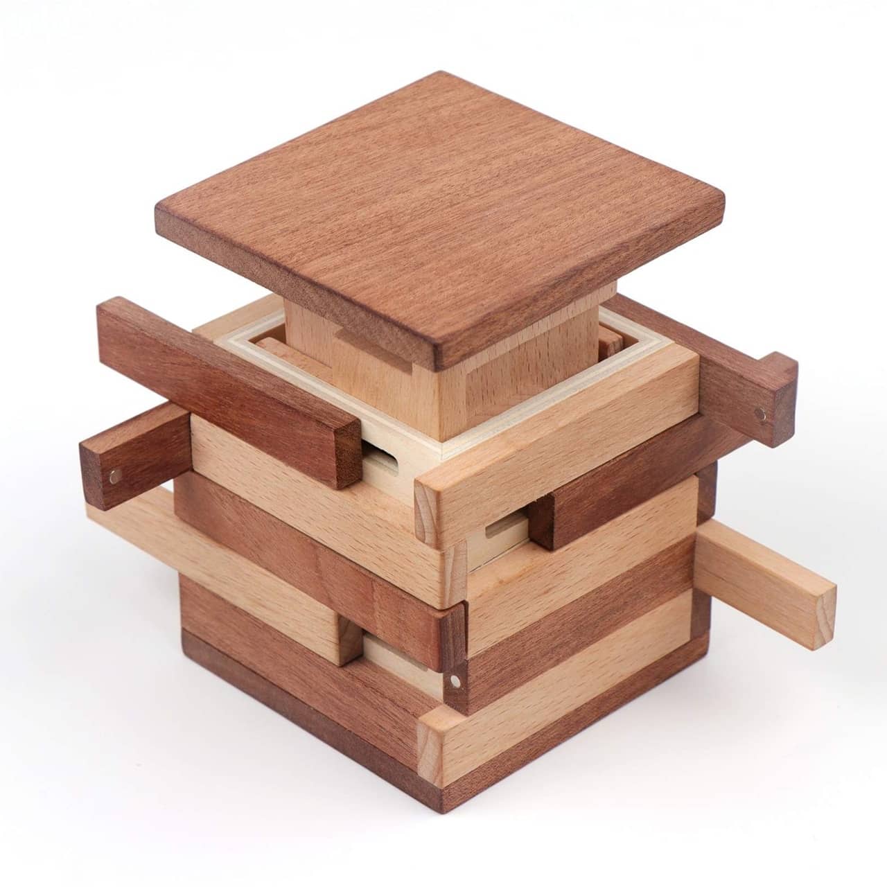 El The Blind Box es un ingenioso rompecabezas de madera creado por Madnesstoys que combina desafío mental y funcionalidad. A primera vista parece una simple caja, pero en realidad es un compartimento secreto que solo puede abrirse resolviendo un complejo sistema interno de piezas móviles. Es ideal para ocultar pequeños regalos, tarjetas o mensajes, convirtiendo la experiencia en un acertijo sorpresa.