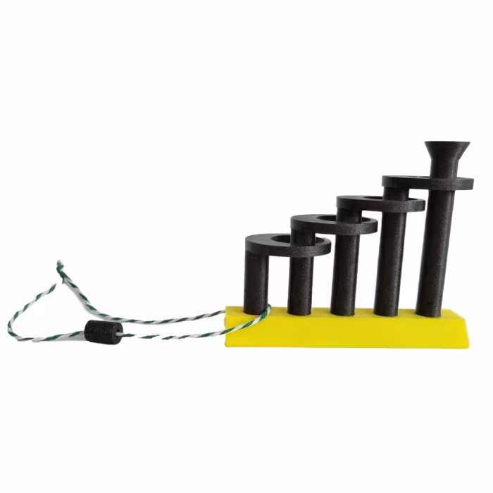 El objetivo de este puzzle es liberar la cuerda que conecta los cinco postes escalonados. Ten en cuenta que este puzzle se clasifica como “Imposible”, así que requerirá de toda tu astucia, concentración y destreza para desvelar la solución. Cada movimiento que realices será crucial para descifrar el enigma y liberar la cuerda de manera exitosa.